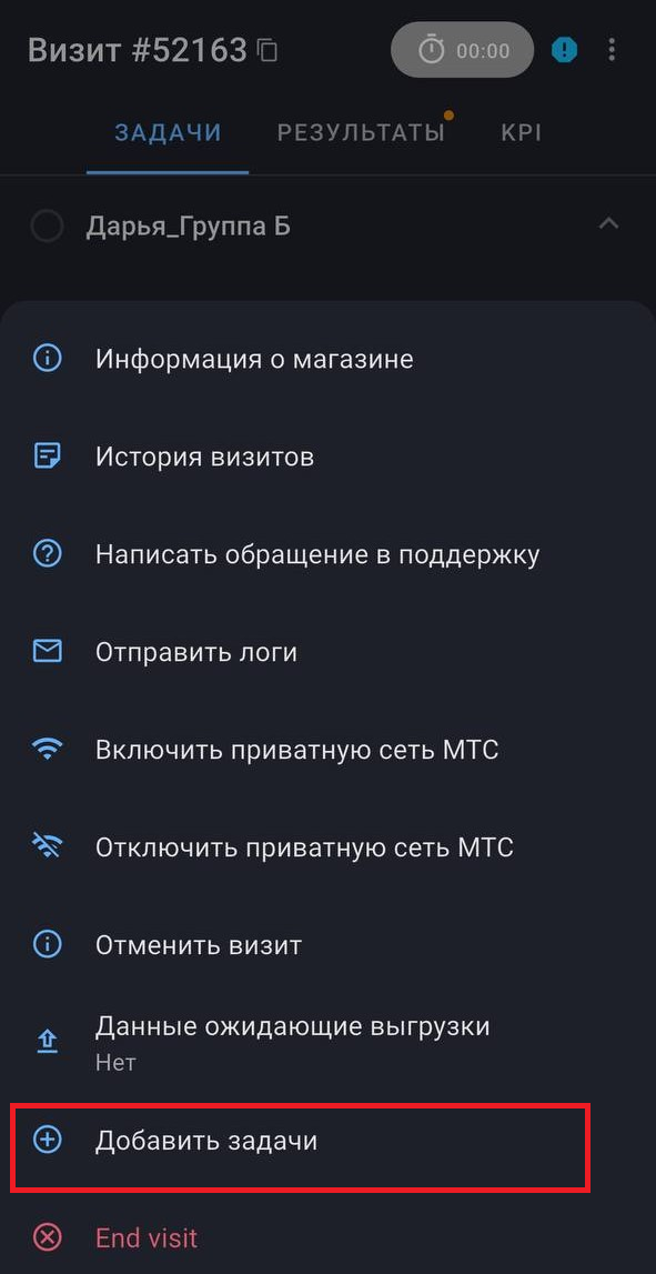Помимо этого, сотрудники могут добавлять задачу/группу задач в мобильном приложении, если руководитель уже создал их на портале и включил настройки "по требованию" и "разрешить клонирование". Сделать это можно в открытом визите, в его настройках через "+".