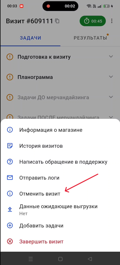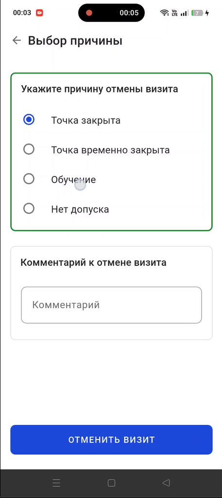 В приложении есть возможность отменить начатый визит. Эта настройка включается отдельно.