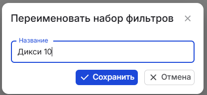 Данный фильтр позволяет выбрать, редактировать название, удалять/ создать, наборы фильтров.